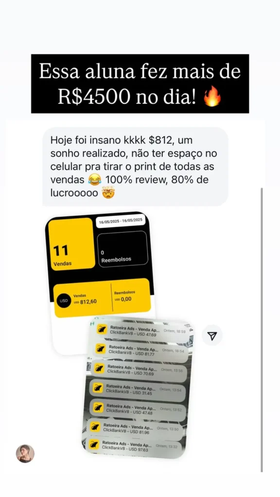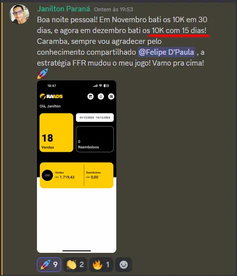 Tive o privilégio de mentorar centenas de pessoas, e agora decidi reunir todo meu conhecimento em um só lugar. Hoje já estamos com mais de 800 alunos aplicando esse método, vendendo todos os dias e construindo um negócio digital do zero.